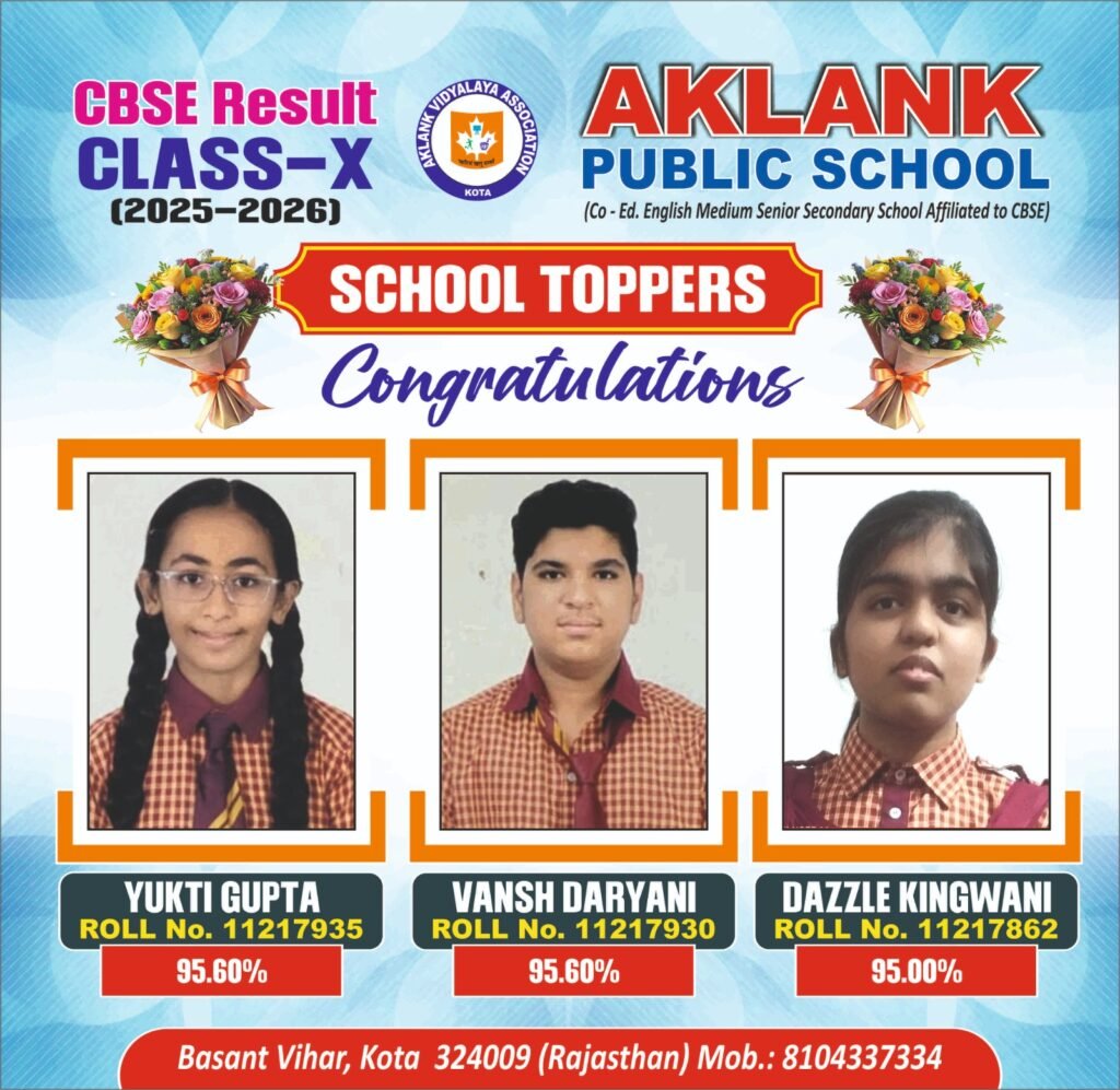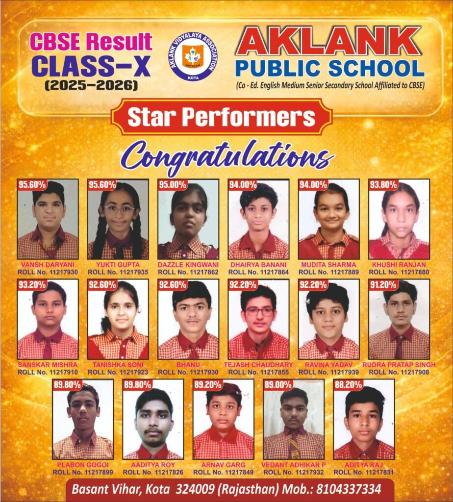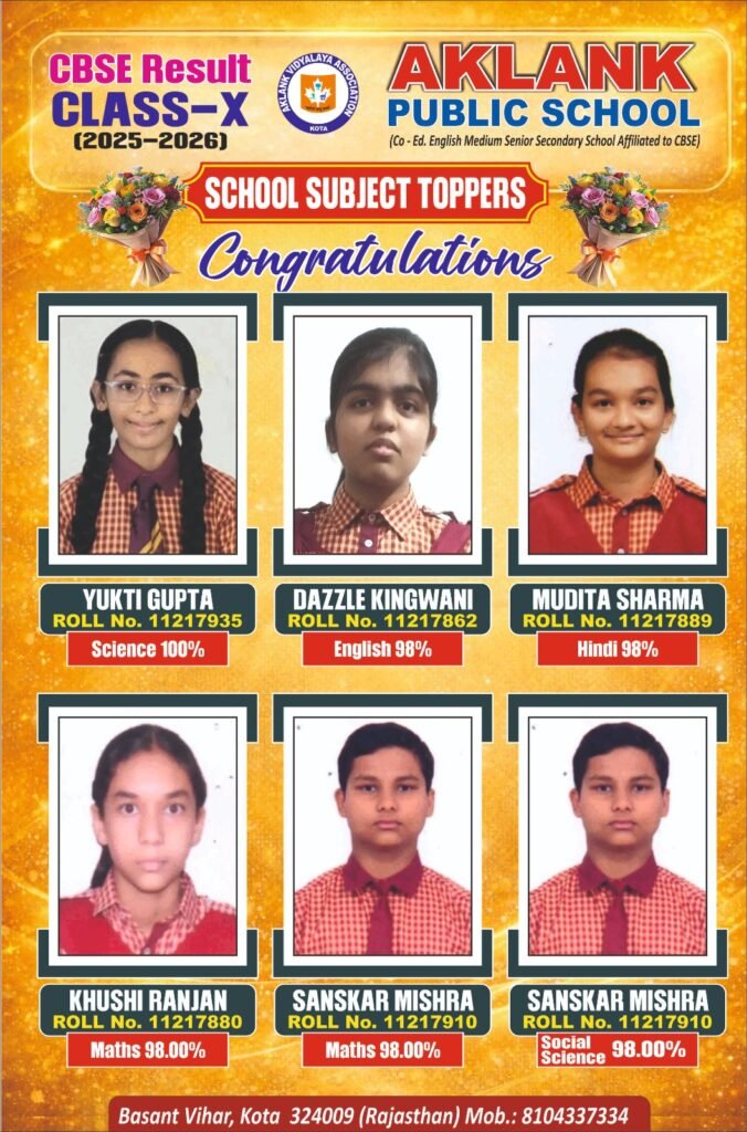 AKLANK PUBLIC SCHOOL, the name which has become a paragon in the field of education, caters to the developments of the contours of the student’s personality. It was founded in 1944 by the stalwarts of the elite Jain Society of Kota, after the name of the well-known Jain Saint Swami Aklank Dev.